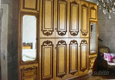 Vendo un set completo di camera da letto vintage. Dispongo di 2 COMODINI e 1 CASSETTIERA abbinati in ottimo stato. ARMADIO ampio sempre in tema (smontato). Infine struttura LETTO matrimoniale. Vendo per sgombero. Vendo anche separatamente. Prezzo da definire. Ritiro e trasporto a carico dell’acquirente. (Purtroppo al momento dispongo soltanto di queste fotografie che appertengono all’ultima dislocazione, ma sono disponbile per chi interessato a procurarne di migliori).