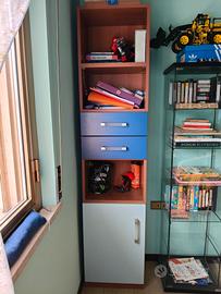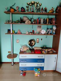 Vendo per inutilizzo Set Cameretta bambino/adulto colore azzurro-blu-legno scuro in Buone Condizioni. La cameretta è composta da 8 pezzi: - Armadio Angolare Grande dimensioni altezza 230 profondità 57 larghezza 125 -Armadio Colonna Grande dimensioni altezza 230 profondità 57 larghezza 45 - Libreria Colonna dimensioni altezza 198 profondità 35 larghezza 45 - Comò Grande altezza 73 profondità 56 larghezza 135 - Comò Piccolo dimensioni altezza 73 profondità 41 larghezza 60 - Letto altezza 89 lungh 203 largh 86 - Libreria a Ripiani dimensioni altezza 213 profondità 30 larghezza 190 - Scrivania dimensioni altezza 73 profondità 73 larghezza 152. Per info e altre foto dettagliate Contattatemi Il prezzo è trattabile