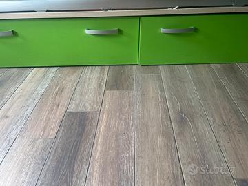 Vendo questo set armadio piu letti a castello con duue spaziosi cassettoni a scomparsa sottostanti al letto inferiore. Larmadio a ponte è molto paiente e prevede al alto destro 4 cassetti poi un armadio con vari ripiani. Sulla parte suoeriore trociamo 4 mensole e 2 spaziosi sconpartimenti per poi terminare a sinistra con un’altra colonna armadio.