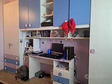 Armadio tenuto bene lungo 4 metri. Letto singolo con letto sotto più 2 materassi. Scrivania.