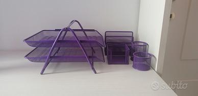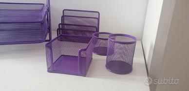 set con porta fogli, porta documenti, penne, post it, insomma tutto ciò che si vuole. è nuovissimo, solo qualvhe graffietto come potrete vedere nel sostegno del porta fogli, per il resto è tutto perfetto, comodo se si vuole la scrivania in ordine