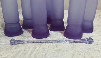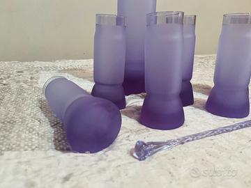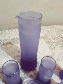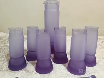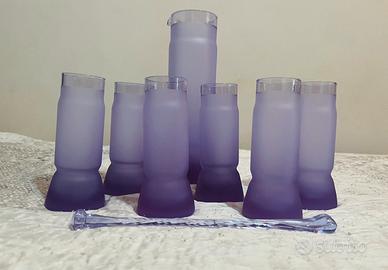 Vendo elegante Set in Vetro Satinato Viola composto da 1 Caraffa, 6 Bicchieri e Miscelatore in Vetro.