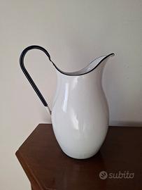 Set toelette composto da catino e brocca per acqua in ferro smaltato bianco. Oggetti retro' originali 1900.