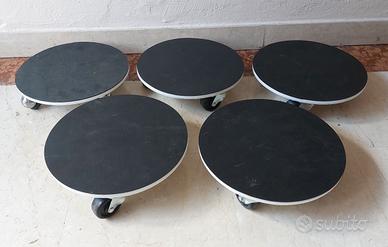 Set di 5 Carrelli Portavasi con rotelle Diametro base 270mm Altezza 70mm Portata 100 Kg