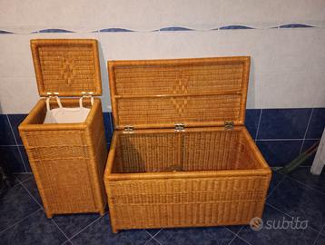 Pratici mobili contenitori di vimini, tenute molto bene, mai all' aperto. Misure: (lungh)85x 44(prof)x 47 (alt); (lungh)38x (prof)34 x 70(alt). Ritiro a mano a carico acquirente.