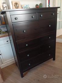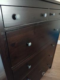 set costituito da cassettiera alta (6 cassetti) e coppia di comodini Ikea modello hemnes nero, in buone condizioni