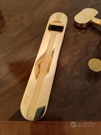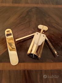 Set composto da un cavatappi e un apribottiglie della marca BIESSE, entrambi design di Pino Spagnolo. Produzione anni '70-80. Articoli placcati in oro 24 carati, mai usati. Senza etichetta ne confezione.