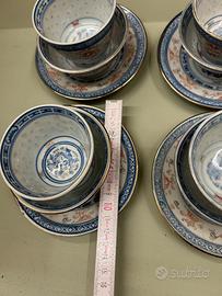 set ceramica 12 pezzi cinese con piattini dolce, ciotole riso o frutta e tazzina da saké.