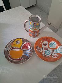 2 piatti decorativi diametro cm 25 più brocca h cm 19 Firma De Simone