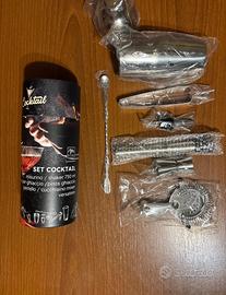 Set cocktail completo di 7 accessori professionali in acciaio inox 18/0 per preparare perfetti cocktail come un vero bartender. Include shaker, misurino, tappo versatore, pestello, cucchiaino mixer, colino e pinza per il ghiaccio.