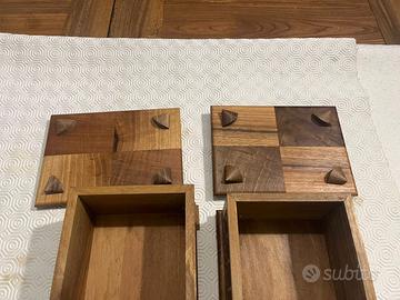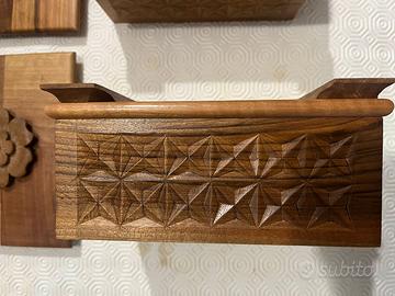 Vendo due cofanetti intagliati a mano, finemente lavorati, con bellissime decorazioni e fiore centrale in rilievo su ciascun cofanetto.