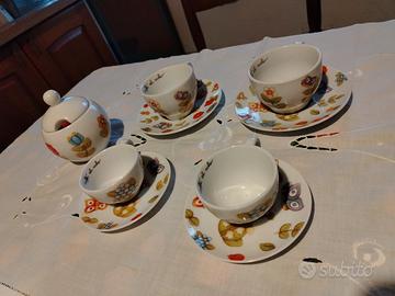 Il set include 1 zuccheriera, 2 tazzine da caffè con piattino, 2 tazze da cappuccino con piattino.