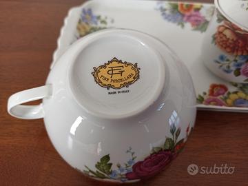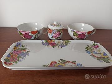 Set colazione per 2 persone composto da 2 tazze, zuccheriera e vassoio Porcellana FG in ottimo stato (mai utilizzato)