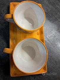 Coppia di tazze da colazione con decorazione girasole 🌻 e vassoio coordinato. "Linea Galileo" decorate a mano. Idea regalo per Natale.