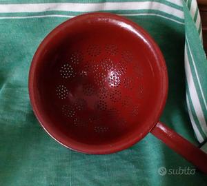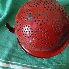 Vecchi attrezzi da cucina anni 50 ca Scolapasta/colino in metallo smaltato lunghezza cm 36 diametro cm 19 ottime condizioni tranne punto scrostato Vedi foto. / /