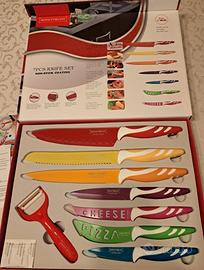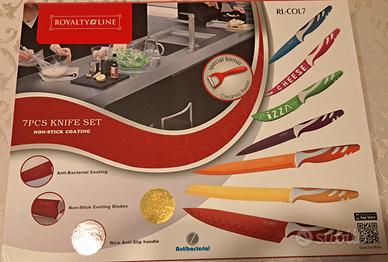 Bellissimo kit di coltelli colorati compreso pelapatate della Royality Line, nuovissimi mai utilizzati, ogni coltello ha il suo utilizzo.