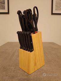 Stato: Ottime condizioni, ceppo in legno ben conservato e lame affilate. (Opzionale: "Mai usato, ancora con scatola originale").