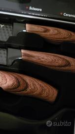 Elegante set di coltelli da cucina con manici in simil legno mai usati.