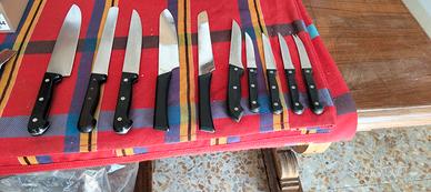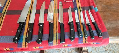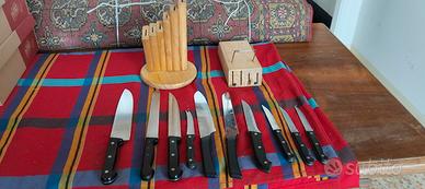 10 Coltelli da cucina con due porta coltelli in legno non sono due serie regolari e non sono Nuovi ma in ottime condizioni.
