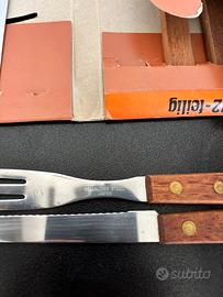 Set sei coltelli e sei forchette, manico in legno, lama in acciaio Stainless Steel Japan