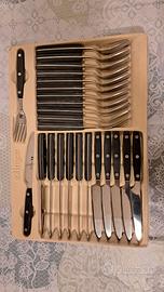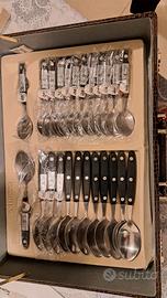 Il set contiene 12 pz x tipo: forchette, coltelli, cucchiai, cucchiaini, e altri 12 pezzi tra coltelli, forbici e altri arnesi da cucina. totale 60 pz.