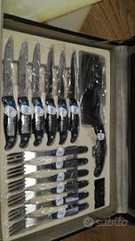 vendo set NUOVO di coltelli da cucina forgiati a mano e custoditi in valigetta 24 ore con serratura - manifattura tedesca altissima qualità valore circa 700-800 euro. Vendo a soli 80 euro per necessità di spazio.