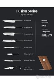 Set Coltelli Professionali 15pz Acciaio Tedesco