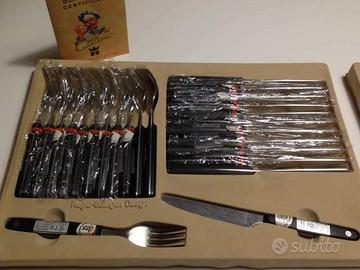 Vendo nuovo set di coltelli professionali e posate Regal Solingen, in acciaio inossidabile, con certificato di garanzia. Pezzi imbustati singolarmente. Il set è contenuto in una valigetta ventiquattrore (serratura a combinazione), con finiture simil legno e sigillo di garanzia.