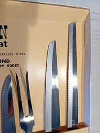 vendo confezione con 6 coltelli posate da cucina in acciaio inox e manico in legno nuovi in scatola mia usati, prezzo 15 euro, possibilità di spedizione a parte