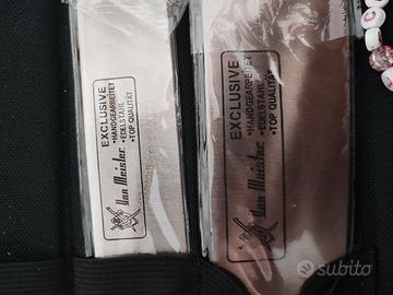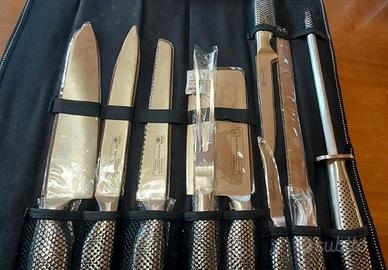 Set professionale di coltelli da cucina Von Meister, completo di custodia in tessuto. In acciaio inox di alta qualità inossidabile, lavorato a mano, manici ergonomici in metallo antiscivolo. Nuovo, mai utilizzato, lame ancora protette da copertura in plastica. Con 10 euro in più spedisco.