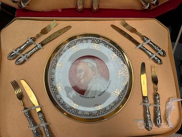 Prezioso set posate con piatto commemorativo Papa Giovanni XXIII. Come da foto