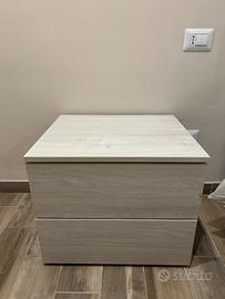 Comò con 3 ampi cassetti e 2 comodini, dotati di 2 cassetti ciascuno.