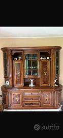 Set completo di tavolo con 6 sedie, portaliquori a forma di mappamondo, credenza pari al nuovo.