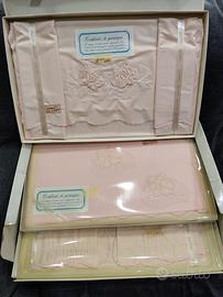 numero 2 set completi matrimoniali composti da coprimaterasso lenzuolo federe e copriletto raso finitura seta in scatola originale con garanzia vintage spedizione disponibile con spese a carico dell'acquirente il prezzo è inteso per singolo completo.