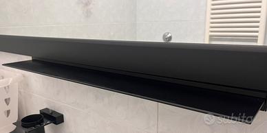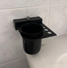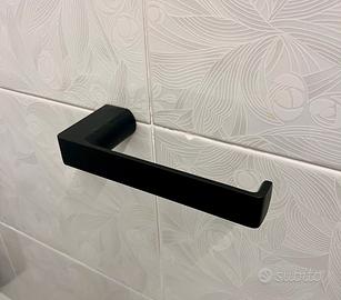Set completo accessori per il bagno. Tutti di colone nero. -Porta asciugamani (cm. 45,5) -Porta rotolo -Porta sapone -Porta spazzolini e dentifricio -Mensola sotto specchio (cm. 70) -Attaccapanni (con 3 ganci) Se venduti separatamente, euro 5 al pezzo.