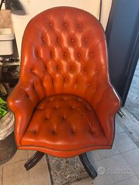 🪑 Poltrona capitonné in pelle color cuoio, Chesterfield con borchie decorative e base in legno scuro. Seduta ampia e comodissima, restaurata e in condizioni eccellenti.