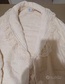 Il set in cotone spugna con ricamo in pizzo macrame' è composto da: