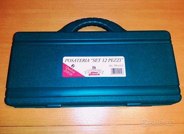 Set completo per barbecue, nuovo con scatola originale (cm. 45X21) in acciaio di pregiata qualità n. 12 pezzi di "ATHOS GUZZARDI"