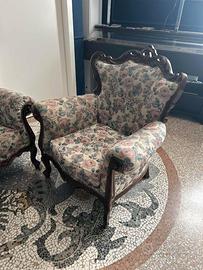 Vendo set completo composto da 1 divano + 2 poltrone stile retrò anni ’60/’70, ideali per chi ama il fascino del vintage autentico.