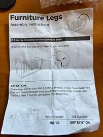 Set completo di gambe (4) per mobili con istruzioni, viti e cuscinetti anti rumore.