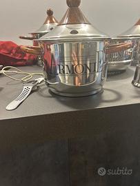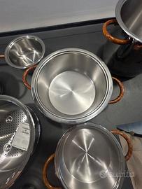 Vendo splendido set di pentole Inoxpran linea Armonie, in acciaio inox con finiture in oro zecchino, completamente nuovo e mai utilizzato.