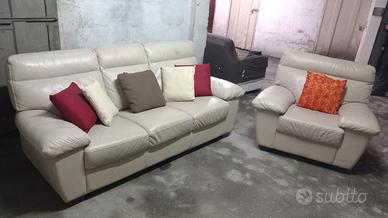 Vendo bellissimo salotto di alta qualità della "DivanibyNatuzzi", composto da Divano 3posti(NON a letto) + Poltrona. Sia il divano che la poltrona sono in vera pelle color cappuccino chiaro, in perfette condizioni; senza strappi, bruciature o altro problema, ne si affonda. Misure divano: 213x90cm. Misura poltrona: 113x90cm. Prezzo super affare 130€ per il completo. Possibilità di trasporto con consegna giù al civico, per Napoli e limitrofi(prezzo a parte). Astenersi curiosi e perditempo. Contatti solo se intenzionati all'acquisto. Zona Villaricca(NA).