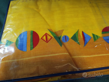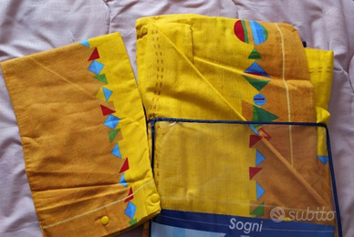 #set #completo #letto #singolo #nuovo #inutilizzato #unapiazza #singolo #giallo #arancione #misto #multicolore #lenzuolosopra #lenzuolosotto #conangoli #federa #cotone #flanella #felpata #geometrico #geometrici #rombo #rombi #cerchio #cerchi #triangolo #triangoli