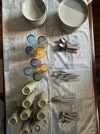 Come da titolo. Vendo per trasloco, in ottime condizioni. 6 piatti fondi 8 piatti piani 8 forchette 8 coltelli 8 cucchiai 8 cucchiaini 8 tazze 8 bicchieri