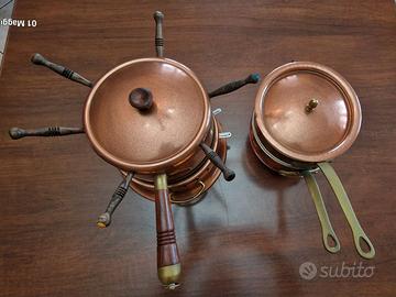 Due set in rame e ceramica, uno per il Bourghignon, un altro per preparare le creme a bagnomaria, oltre a 27 pentole, padelle e stampi in rame. Possibilità di acquisto in stock, singolarmente o in parte. Altre foto sono disponibili su richiesta.
