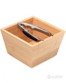 Set composto da ciotola di bamboo e schiaccianoci color argento in lega di zinco con impugnatura in TPR. Rompere i gusci di tutti i tipi di noci sarà molto semplice grazie a questo schiaccianoci in acciaio inossidabile. Viene fornito con un contenitore in modo da poter contenere tutto nella ciotola di bamboo naturale. Il bamboo è un materiale naturale e può avere delle variazioni leggere di colore, dimensione e stampa. Dimensioni: 16 x 16 x 10 cm.