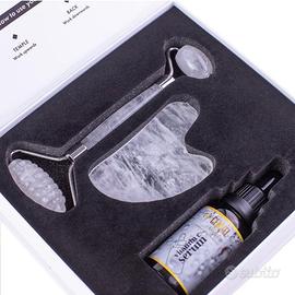 CENVEL ORIGINAL Set con rullo in pietra di giada e siero Gua Sha al 100% con vitamina C, ottimo per il trattamento del gonfiore degli occhi, rassodamento della pelle, anti-invecchiamento