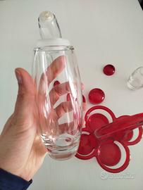 Set olio, aceto, sale e pepe in vetro e plastica rossa marca Guzzini.