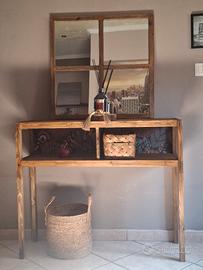 Set Consolle in Abete Noce + Specchio Finestra - Artigianale