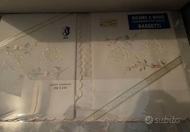 Set completo ricamato a mano di Bassetti. Mai aperto in confezione originale Solo consegna a mano su Roma